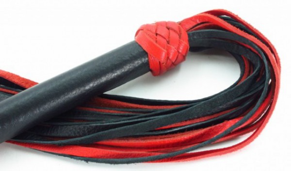 Плеть-​многохвостка черно-красная "BDSM-​Арсенал" с плетеной рукоятью, кожа
